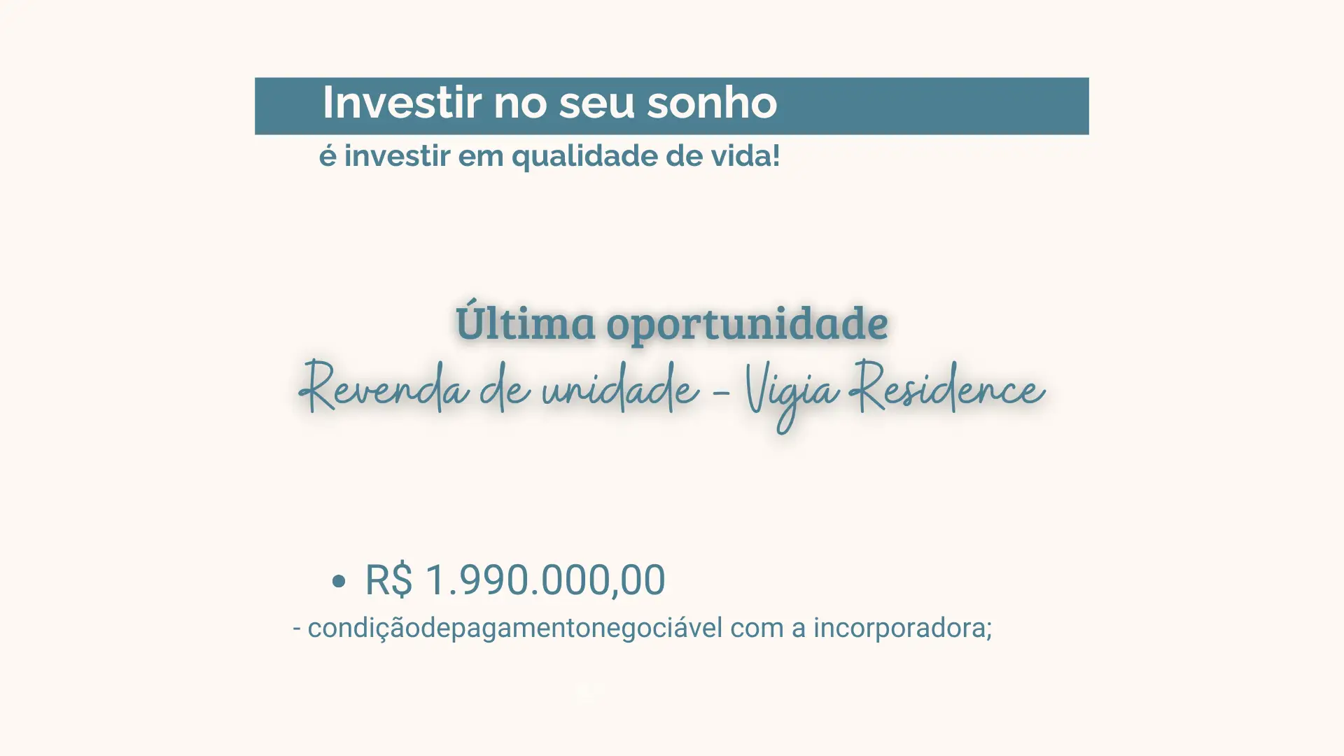 Apartamentos de alto padrão localizados em Garopaba, em direção à deslumbrante Praia da Vigia. O Vigia Residence é o lugar perfeito para quem busca combinar o luxo e a tranquilidade da natureza com a conveniência de estar a poucos passos do mar. Invista no seu futuro lar à beira-mar!